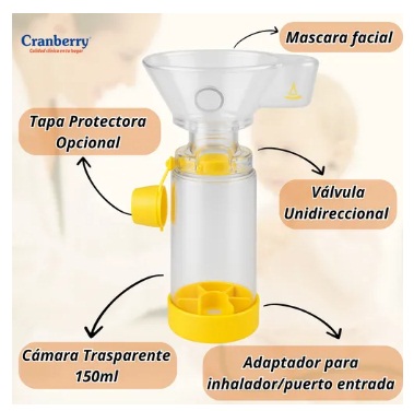 Esta aerocámara está diseñada para ser utilizada con inhaladores de dosis medida, que son dispositivos que liberan una cantidad premedida de medicamento en forma de aerosol.